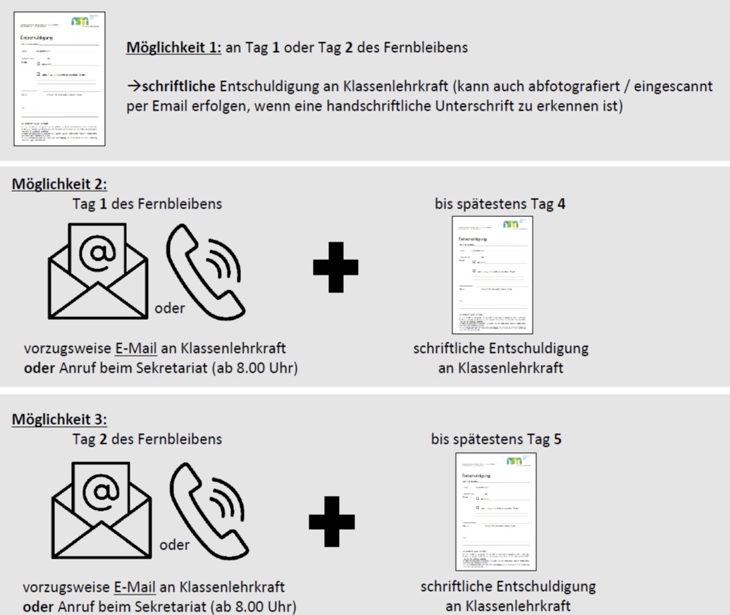Wir bitten darum, die Regelungen der Entschuldigungspflicht unbedingt einzuhalten.